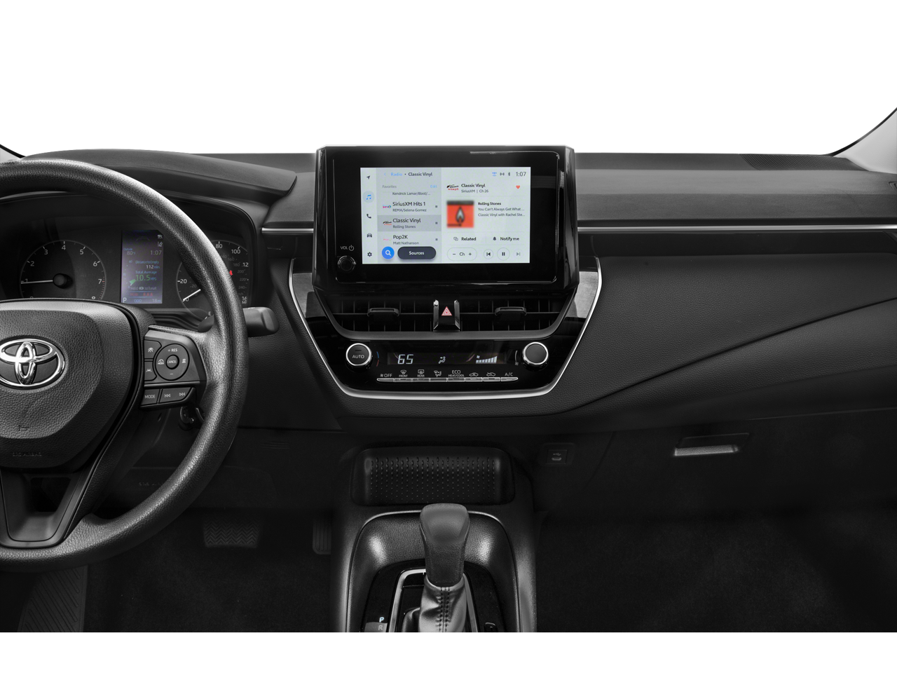 4-Wheel Disc Brakes, 6 Speakers, ABS brakes, Air Conditioning, AM/FM radio: SiriusXM, Auto High-beam Headlights, Automatic temperature control, Brake assist, Bumpers: body-color, Delay-off headlights, Driver door bin, Driver vanity mirror, Dual front impact airbags, Dual front side impact airbags, Electronic Stability Control, Emergency communication system: Safety Connect (up to 10-year trial subscription), Exterior Parking Camera Rear, Front anti-roll bar, Front Bucket Seats, Front Center Armrest, Front reading lights, Front wheel independent suspension, Fully automatic headlights, Illuminated entry, Knee airbag, Low tire pressure warning, Occupant sensing airbag, Outside temperature display, Overhead airbag, Panic alarm, Passenger door bin, Passenger vanity mirror, Power door mirrors, Power steering, Power windows, Premium Fabric Seat Trim, Radio data system, Radio: 8 Toyota Audio Multimedia, Rear anti-roll bar, Rear seat center armrest, Rear side impact airbag, Rear window defroster, Remote keyless entry, Speed control, Split folding rear seat, Steering wheel mounted audio controls, Tachometer, Telescoping steering wheel, Tilt steering wheel, Traction control, Trip computer, Variably intermittent wipers, and Wheels: 16 Wide Vent Steel. Recent Arrival! 32/41 City/Highway MPG
